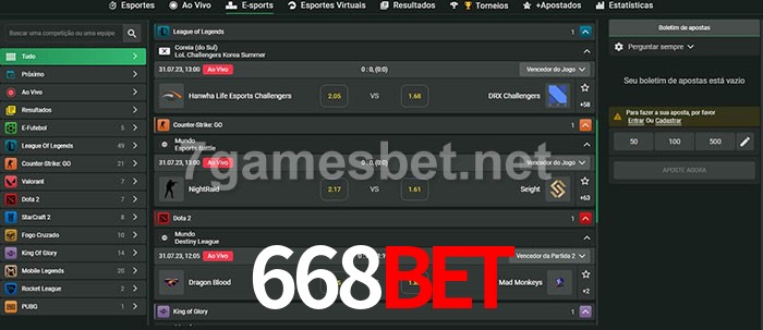 O 668Bet oferece uma grande seleção de opções de apostas em e-sports com probabilidades competitivas